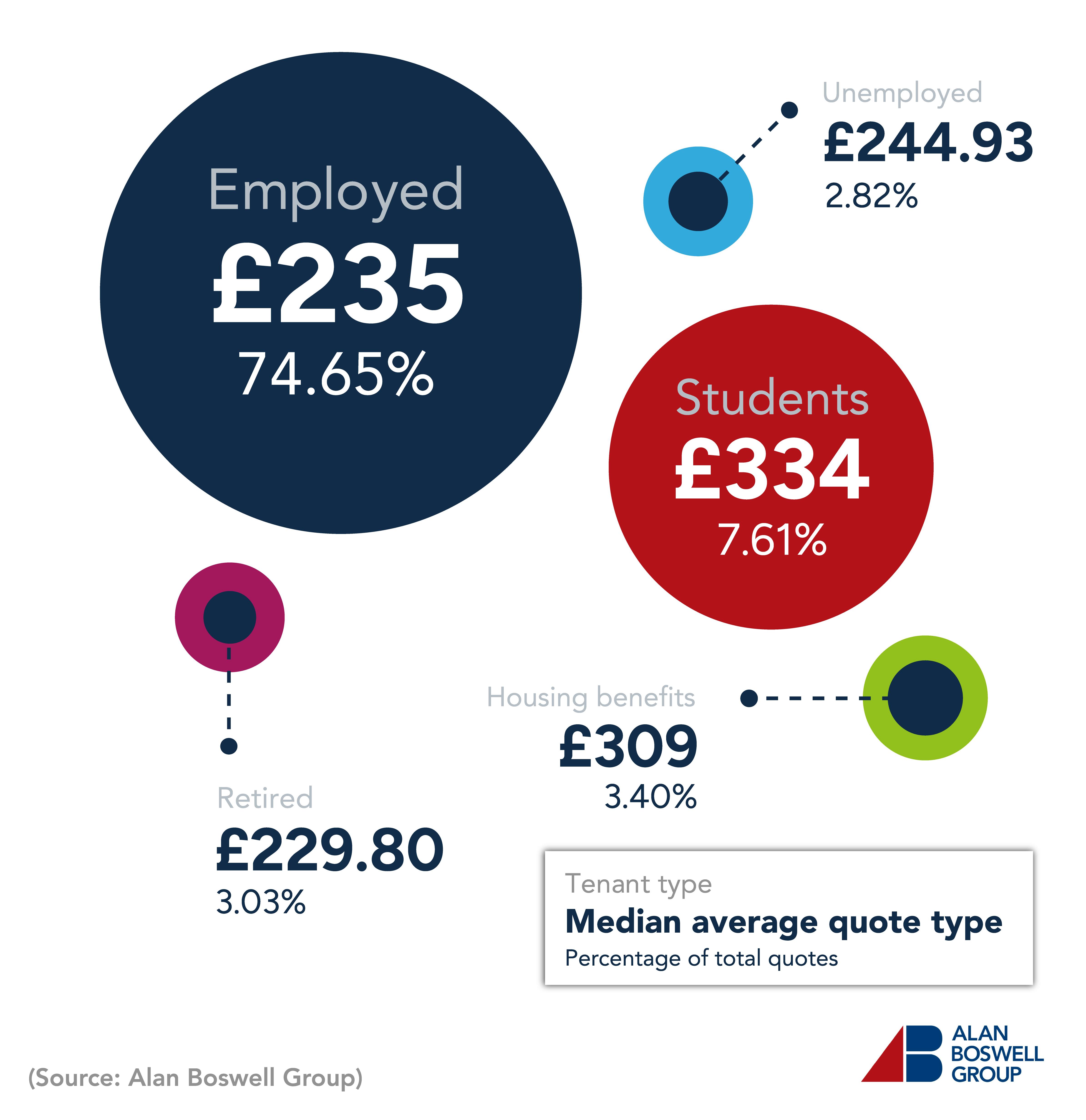 Landlord insurance costs can also be affected by the type of tenants living in the property (i.e., whether they are employed, students, part of a house share, housing association, or local authority).